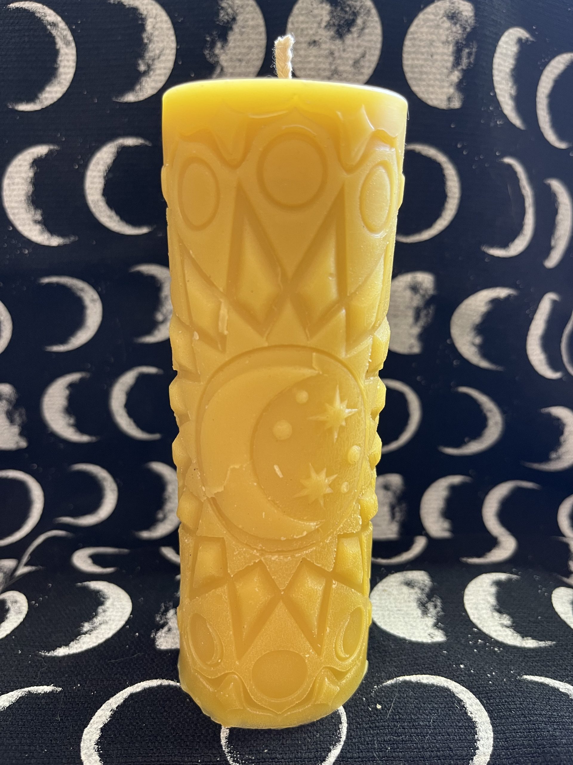 Celestial Beeswax Pillar Candle – Handcrafted with Moon & Star Design
