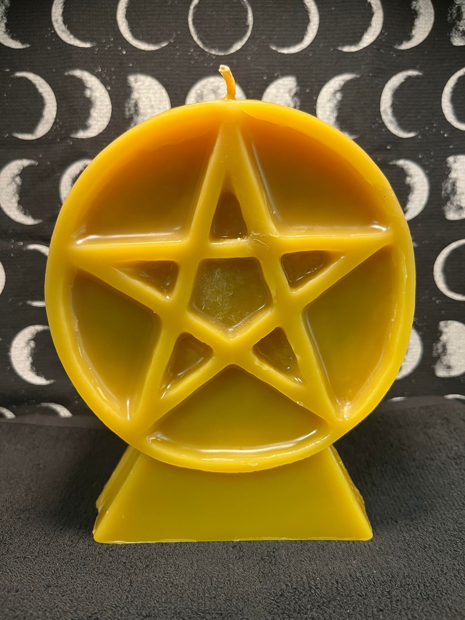 The Pentacle Beeswax Candle is a handmade beeswax candle designed with a powerful protection symbol — ideal for altar décor, rituals, meditation, and intentional home styling.